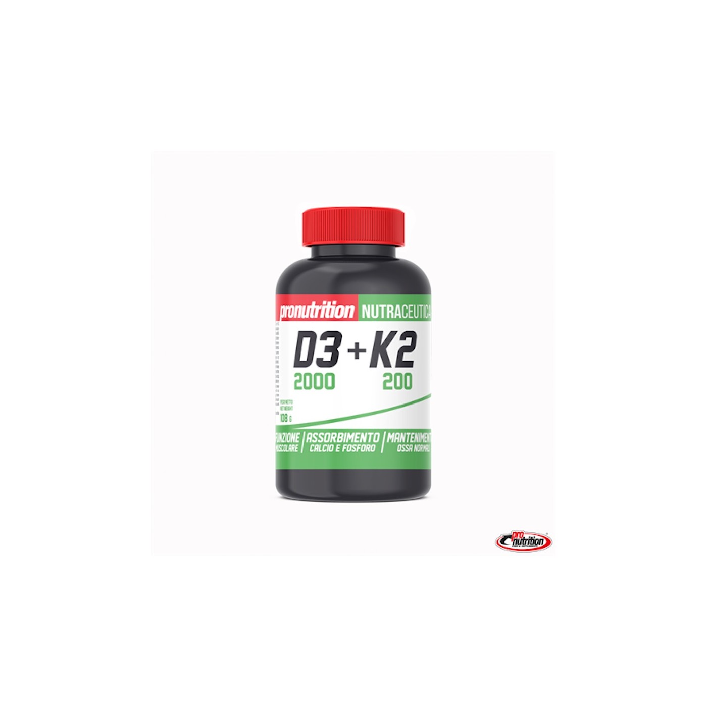 Integratore Alimentare a base di Vitamina D3 e K2. Le vitamine K2 e D3 utilizzate sono ottenute per fermentazione vegetale. La D3 da lichene islandico e la K2 è sotto forma di menachinone-7. Le vitamine D e K contribuiscono al mantenimento di ossa normali. La Vitamina D contribuisce al normale assorbimento/utilizzo del calcio e del fosforo ed a normali livelli di calcio nel sangue ed al mantenimento della normale funzione muscolare e normale funzione del sistema immunitario. Il prodotto non contiene naturalmente lattosio
